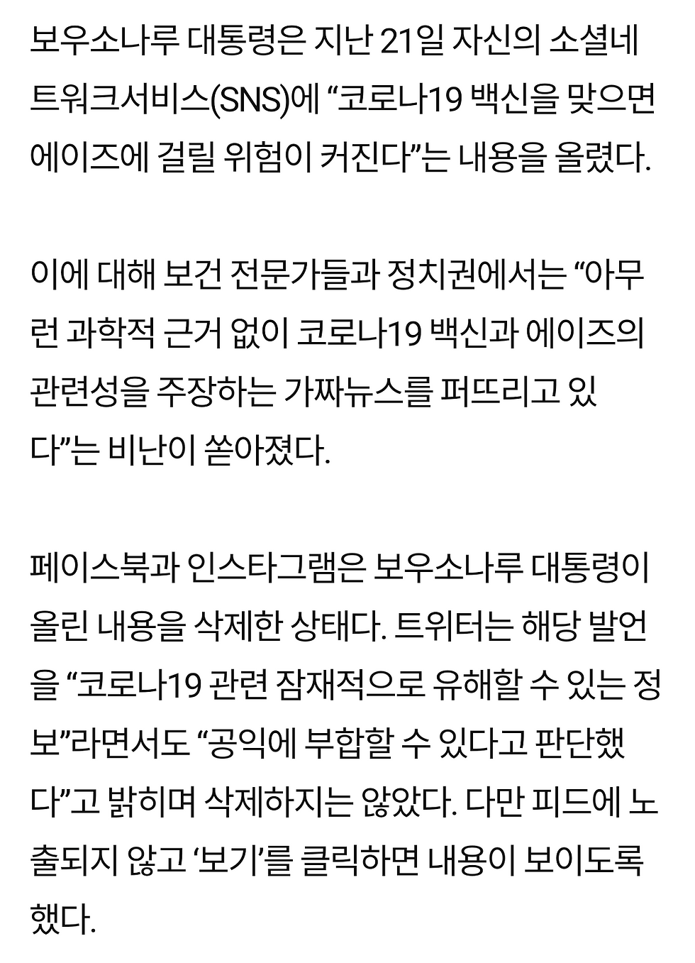 “백신 맞으면 에이즈 위험”…브라질 대통령 트윗 논란 - https://m.seoul.co.kr/news/newsView.php?id=20211026500016&cp=seoul§ion=international&wlog_tag1=mb_seoul_from_section 출처:서울신문🌺백서스 BEXUS🌺 [실내방역 스프레이] ♡디스인팩션워터♡ 99.99% 살균소독 m.smartstore.naver.com[실내 방역] 백서스 디스인펙션 워터 : 행복한백수들99.99% 프리미엄 고수준 살균소독수
